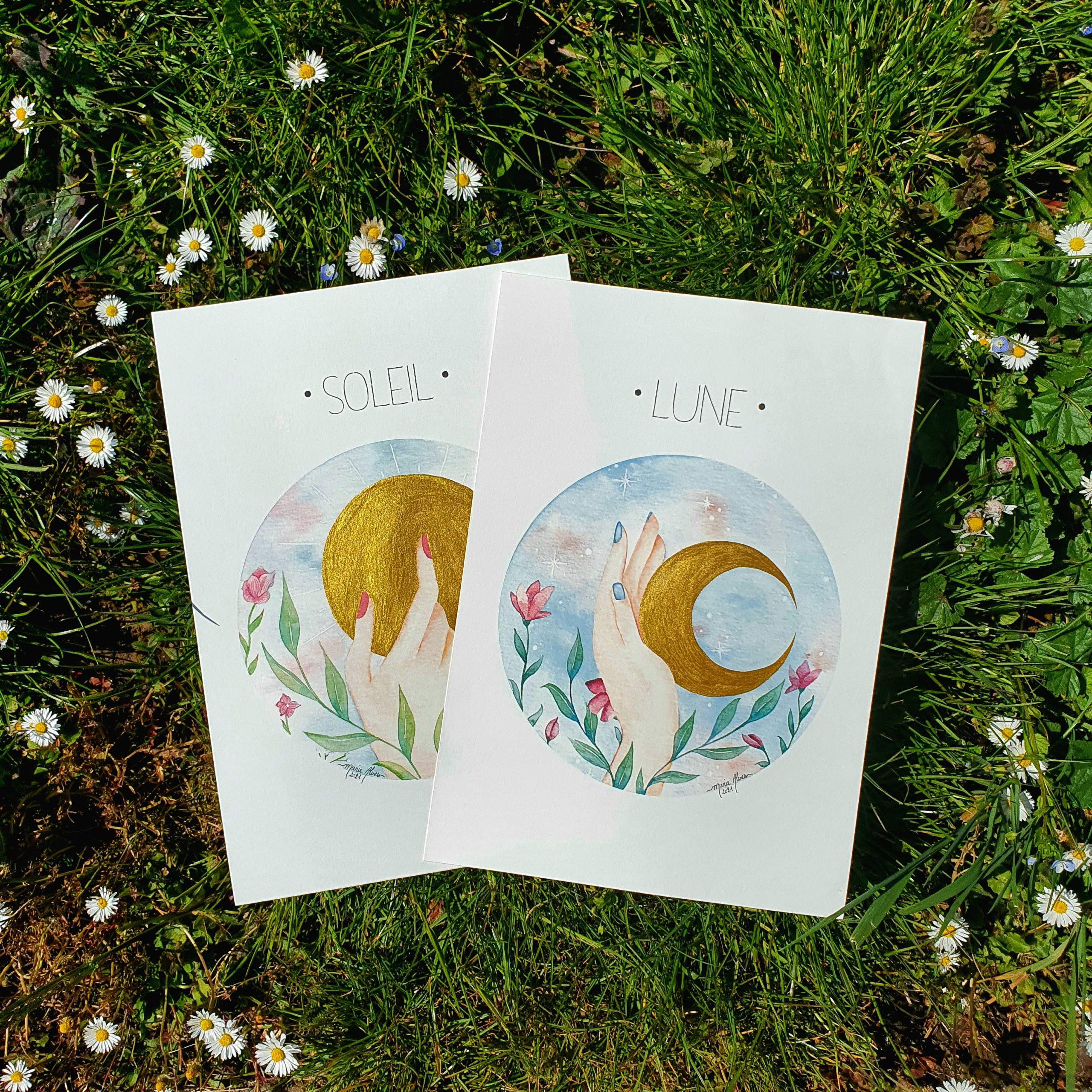 À l’unité (print « Lune » OU print « Soleil ») ou en duo (le lot des deux ensemble « Lune » ET « Soleil » ) !